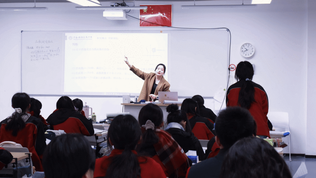 数学·对称:朱老师从校徽对称引出函数奇偶性,借助动态图像与学生自主探究,在形与数的转换中建构数学概念,呈现数学的严谨与和谐之美。