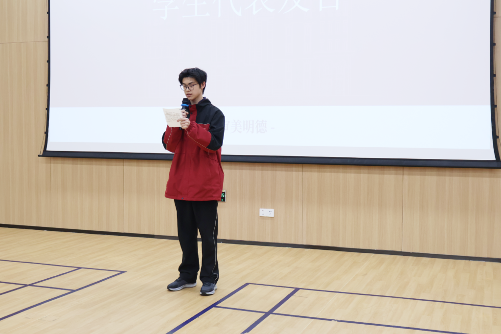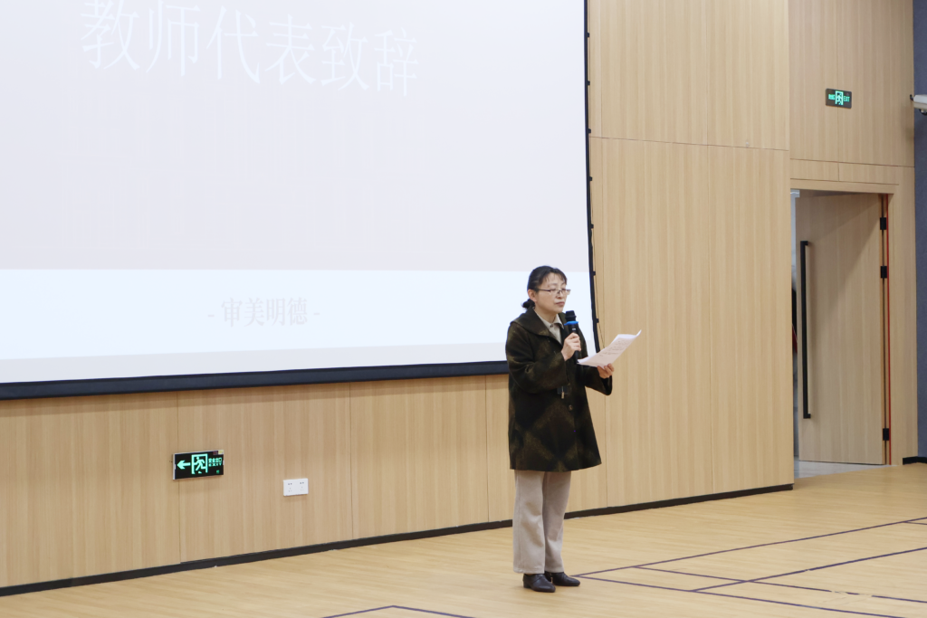 教师代表张老师深情回顾了同学们过去一学期的努力,并分别寄语三个年级:高一要适应节奏,打好根基;高二即使跌倒也要咬牙坚持,厚积薄发;高三最后97天,把浮躁收起,用行动兑现梦想。她代表全体教师承诺:做学生学习上的引路人、生活中的知心朋友。
