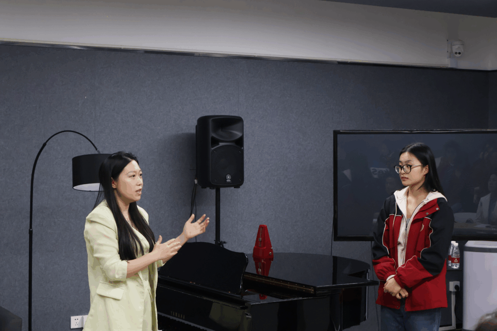 牛老师则以其辉煌的舞台经验与精湛的演唱造诣,聚焦于学生的艺术表现力与舞台风范。从咬字吐字的清晰圆润,到肢体语言与面部表情的协同表达,她以细腻的示范与讲解,为学生勾勒出一位歌者应有的艺术画像。